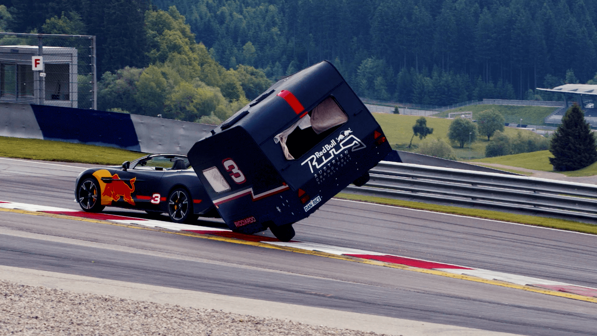 Zwei Formel 1 Fahrer, zwei Aston Martin mit 600 PS und zwei heruntergekommene Wohnwägen im Red Bull Design sind die Zutaten für eine der aufregendsten Produktionen im Jahr 2017.